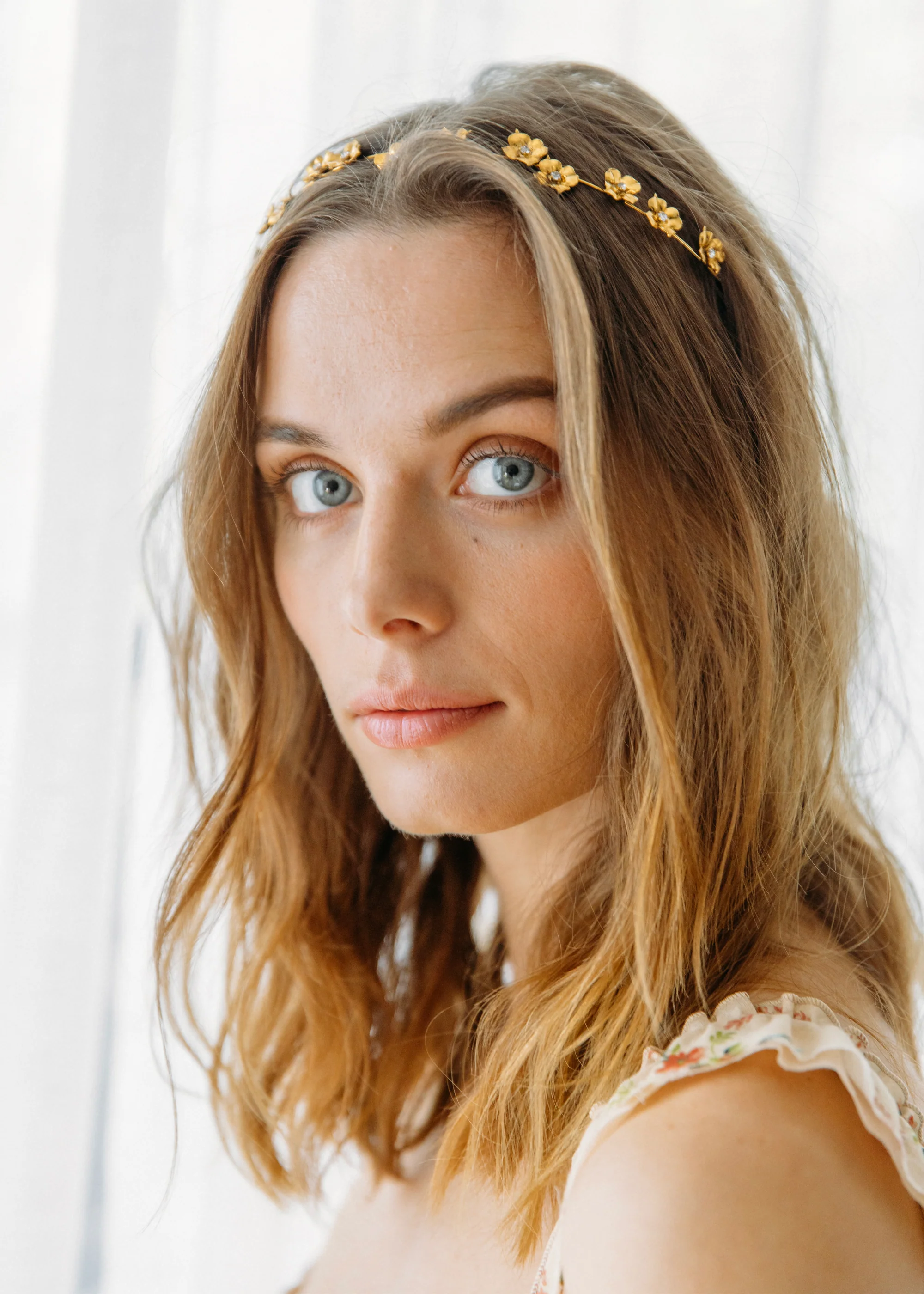 頭箍採用鍍金黃銅和施華洛世奇水晶裝飾在紐約手工製成。