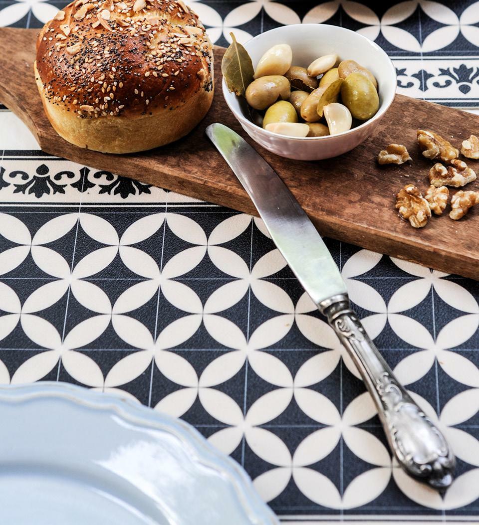桌墊採用優質、易於清潔的乙烯基片材製成,有多種設計可供選擇:仿古瓷磚、拆衷主義和十字繡。